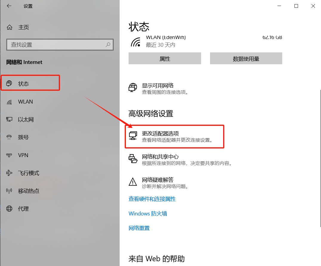 Win10打开设置——更改适配器选项;